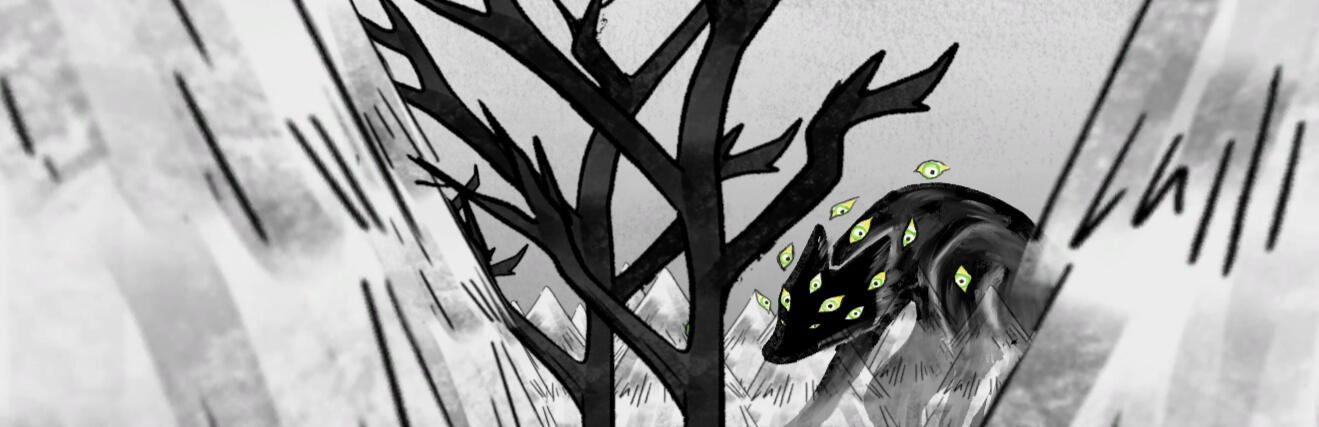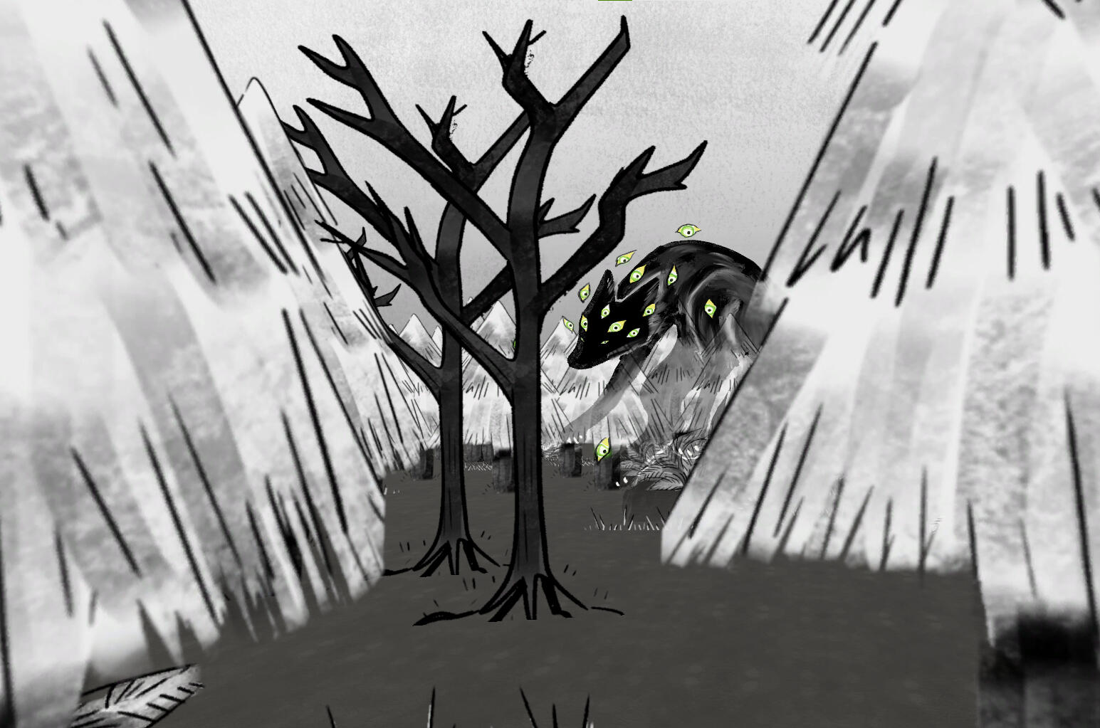 The Curse of the Wolf With Many Eyes is a narrative exploration game where you travel up a mountain. As you progress, the game takes your control away from you more and more as the curse runs its course. Throughout the journey, you can find hidden items and texts left behind by those that traveled before you. Perhaps they can shed some light on where you are, how you got there, and who you may become.This game was created over the span of 48 hours, in collaboration with Damon Stallman during the 2022 Global Game Jam.A more polished 3D iteration is slowly being developed.