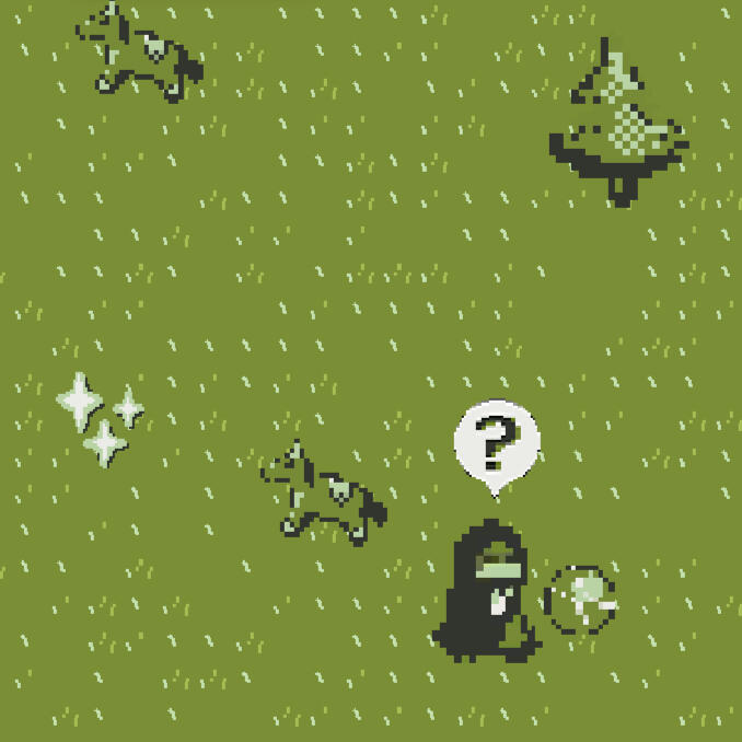 > wander is an experimental game where (you guessed it) you wander through a randomly generated map, interacting with randomly generated objects and scenes. Once you wander too far, the day begins again and a whole new map is there to explore.The map is procedurally generated, and the text pulls from a list of nouns, adjectives, and verbs, gathered together using Tracery, a program that allows for procedurally generated stories.This game was created over the span of 48 hours, in collaboration with Damon Stallman during the 2021 Global Game Jam.