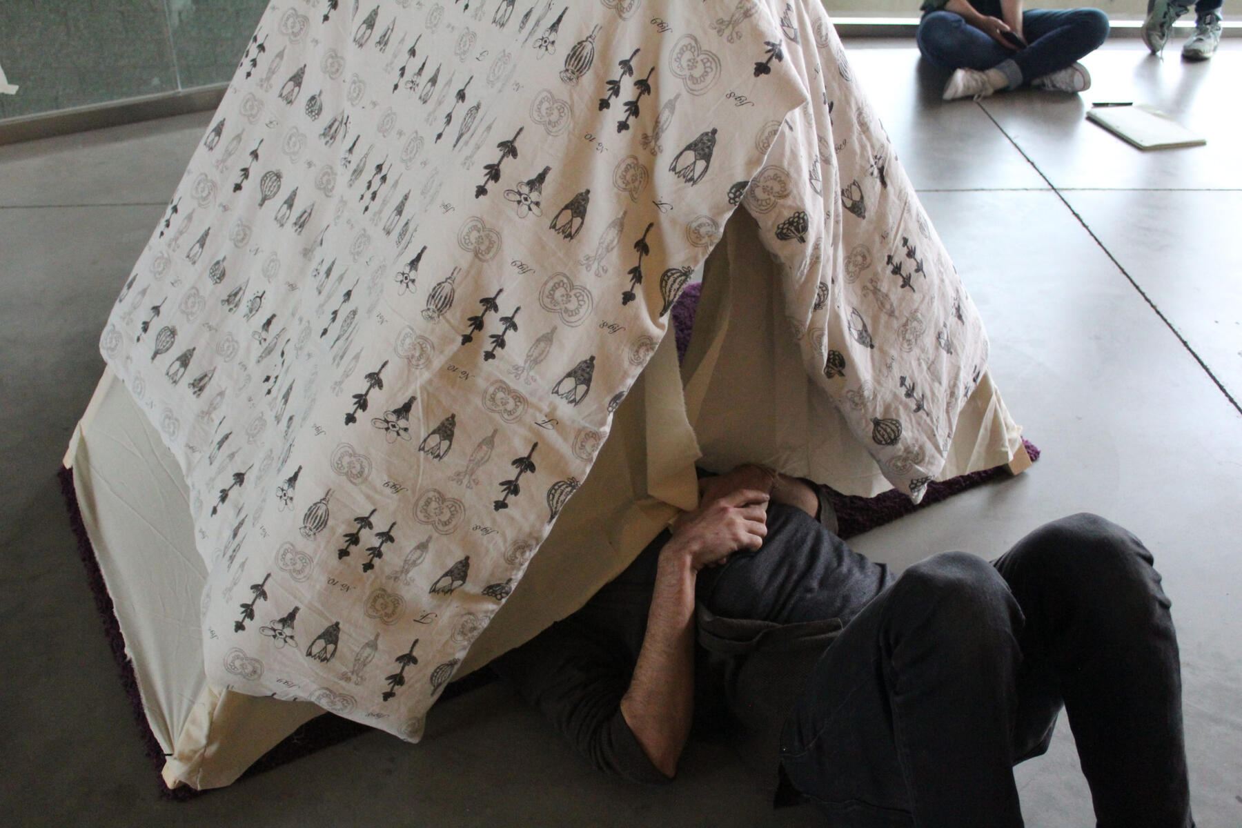 An installation where two people, strangers or friends alike, break down barriers and learn about each other. The only catch? The method of sharing your story is dictated by the cards you choose together - from whispering in a cozy tent, to posting your answers online for all to see.